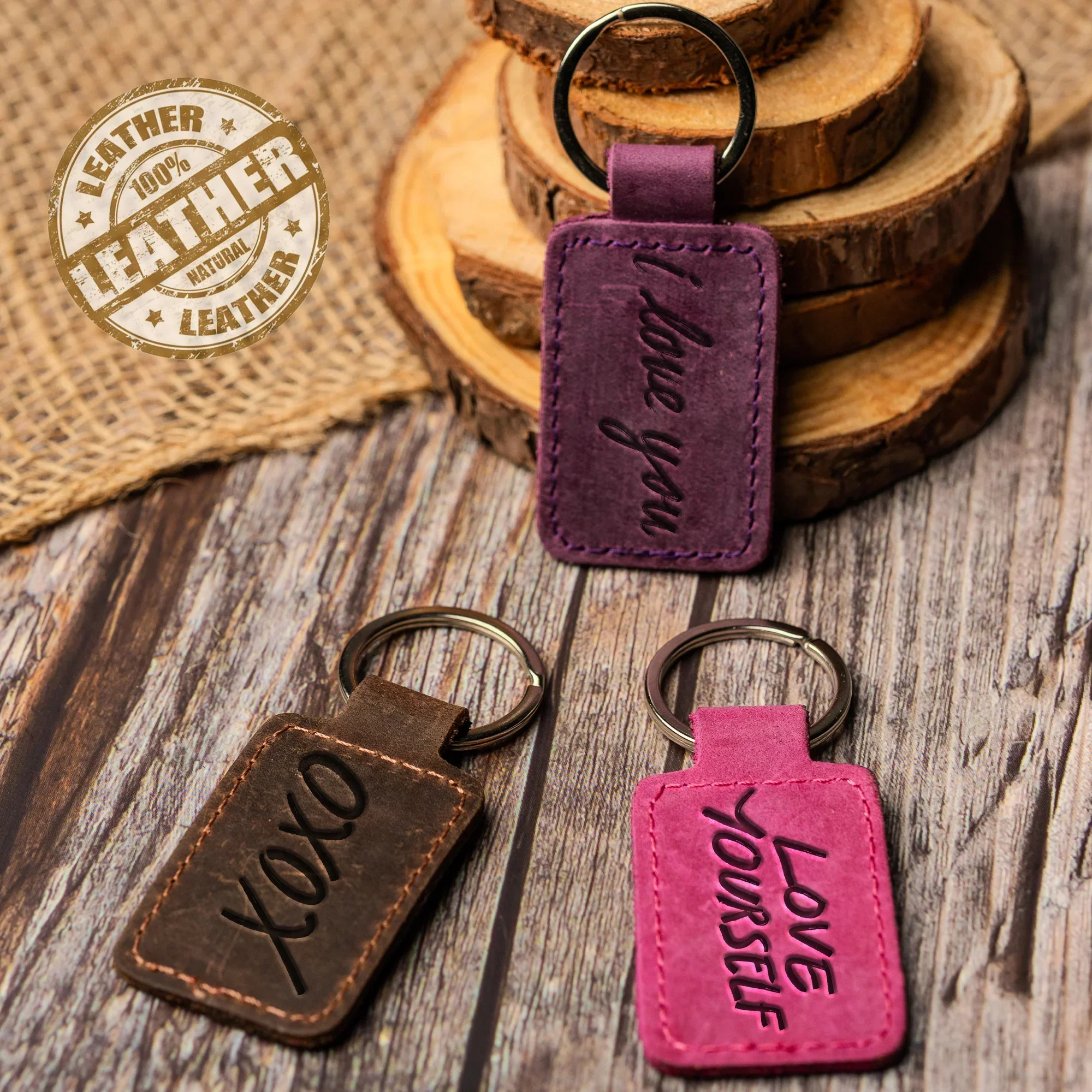 Discover the perfect everyday gift with our personalized leather keychains. Crafted from premium full grain leather and custom engraved with your choice of text, initials, or logos, these keychains are durable, stylish, and uniquely yours. A thoughtful custom leather gift for birthdays, weddings, corporate events, or just because.