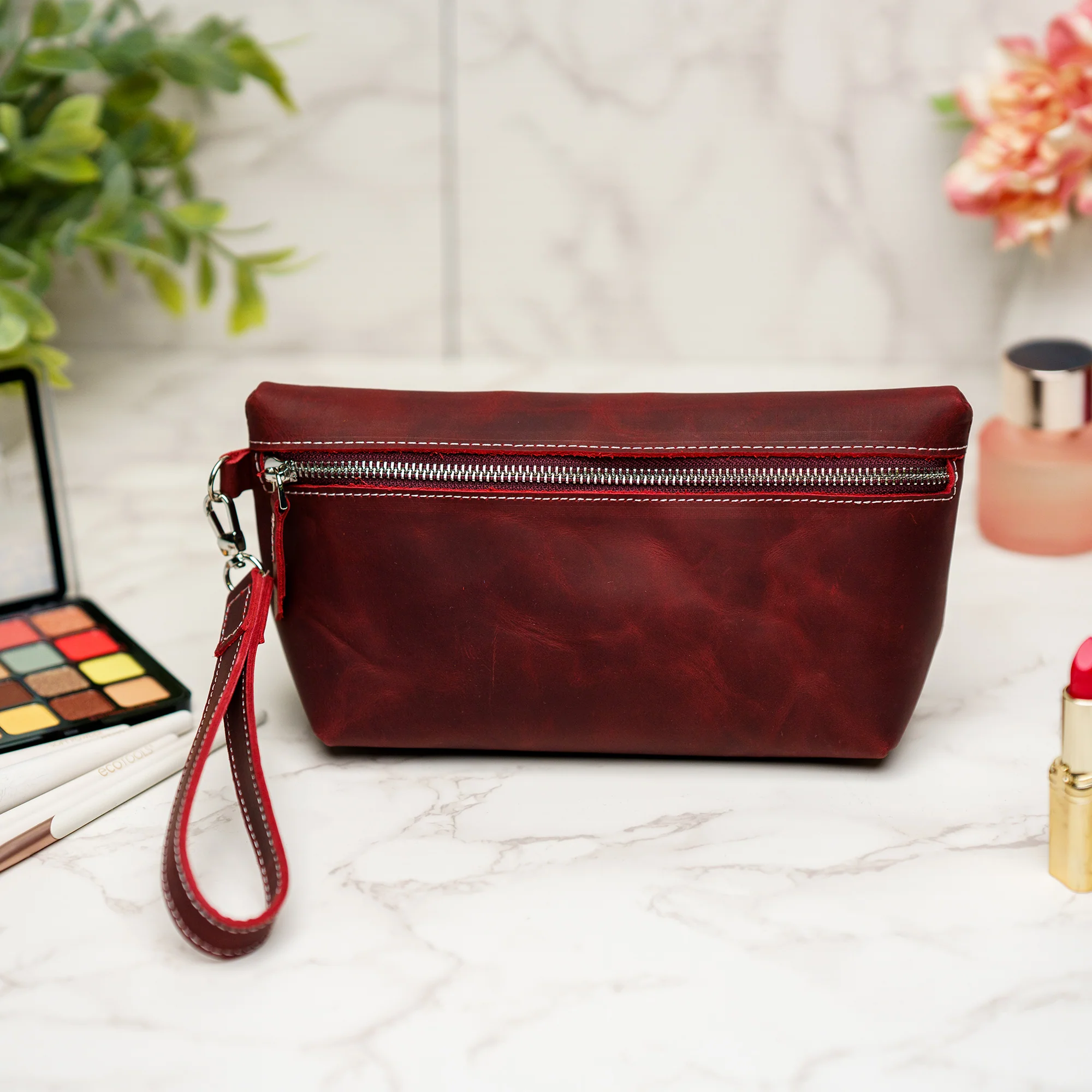 Organize your beauty essentials in style with our Custom Engraved Leather Makeup Bag V2, handcrafted from premium genuine leather for a luxurious touch. Personalize this spacious yet compact cosmetic bag with a name, initials, or a special quote using our precision laser engraving. Designed for daily use or travel, this durable leather organizer ages beautifully and serves as a sophisticated, unique gift for any occasion.